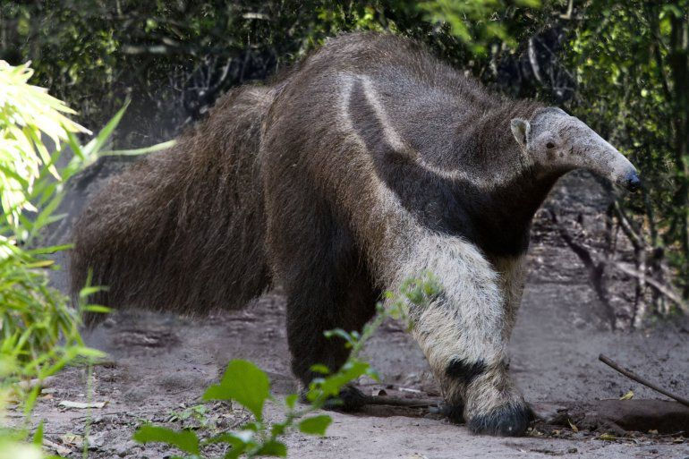 Un oso hormiguero gigante se pasea en el zoológico de Huachipa, a las afueras de Perú. También conocido como oso bandera o yurumí, Myrmecophaga tridactyla es la mayor especie conocida de oso hormiguero y el único representante su género. El cuerpo de este curioso animal puede llegar a medir entre 1,60 y 2,10 metros desde la cabeza a la cola y pesar hasta 40 kilogramos. Posee un hocico muy alargado y de forma cónica en cuyo interior alberga una fina y ágil lengua que pudiendo llegar a alcanzar los 60 centímetros se encuentra recubierta de una sustancia adherente que le permite atrapar los insectos de los que se alimenta, generalmente hormigas y termitas. Lobito de río - nutria (LAGUNAS DE YALA)